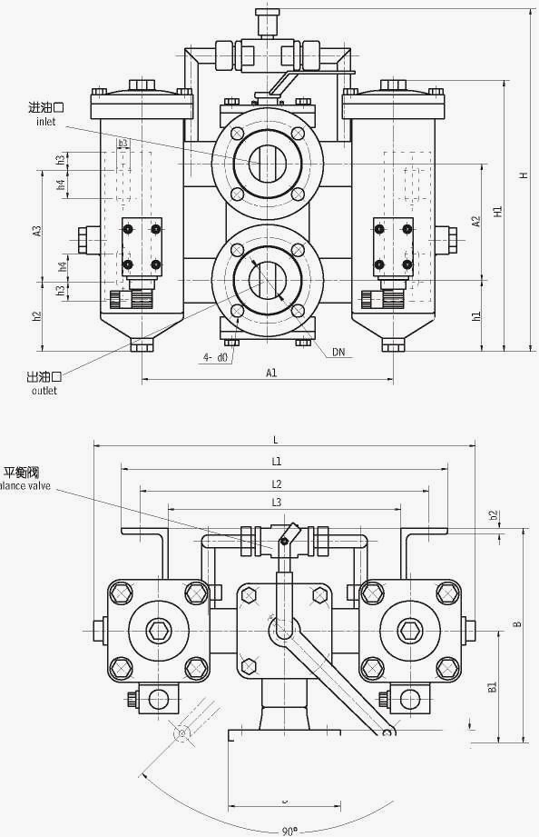 在工作過程中,單筒過濾器濾芯堵塞到一定程度需清洗或更換濾芯時(shí),要停止主機(jī)工作來更換濾芯,這樣不僅浪費(fèi)時(shí)間更不能滿足主機(jī)連續(xù)工作需要,雙筒過濾器有效地解決了單筒過濾器這方面的缺陷,在不停機(jī)的情況下可清洗或更換濾芯來保證主機(jī)正常連續(xù)工作。