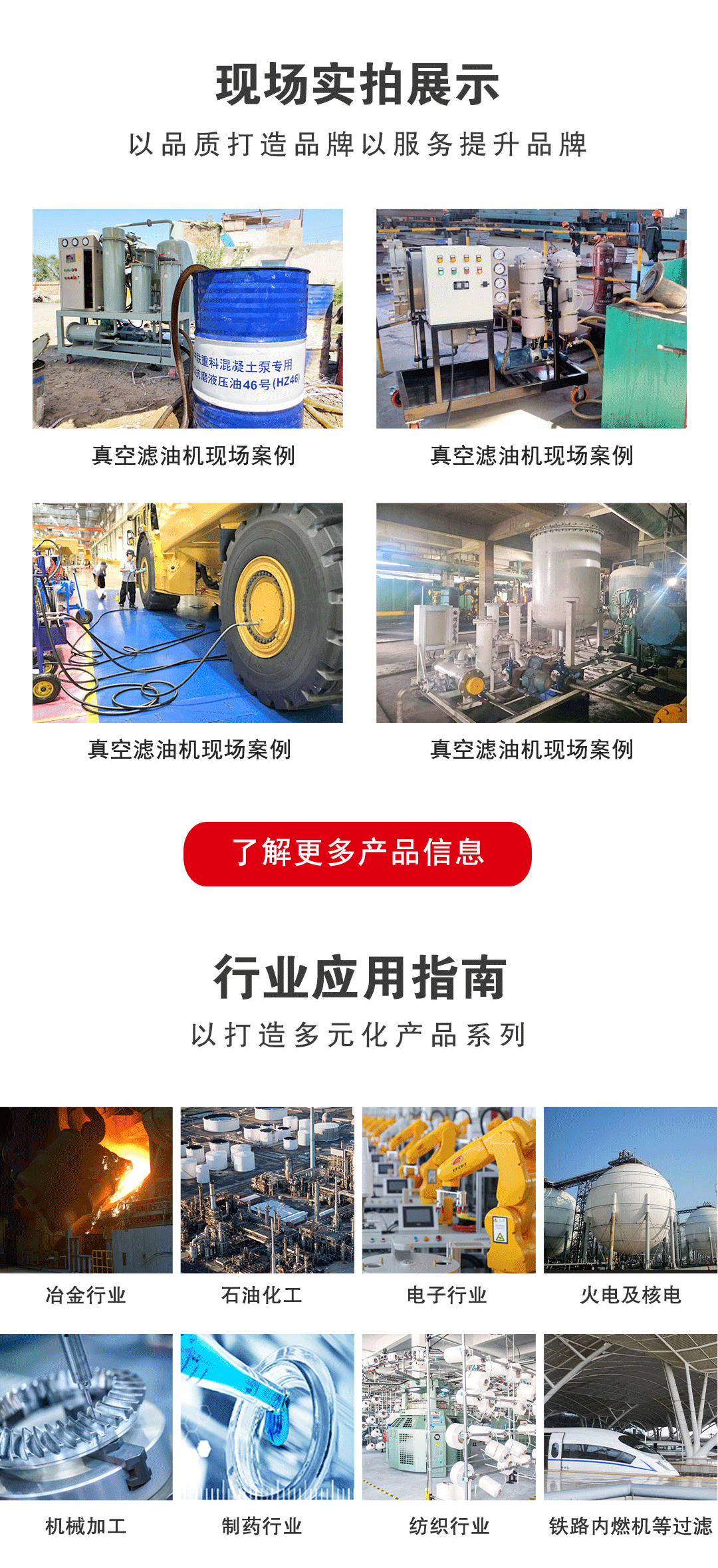 如油品乳化嚴(yán)重,用油量較大,請(qǐng)選用TYA系列真空濾油機(jī)。