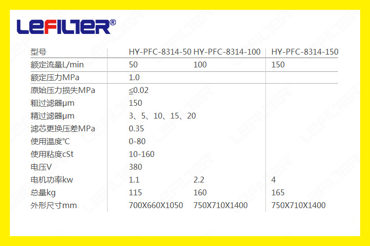 PFC8314U-100替代頗爾濾油機是流量為100L/min的PFC系列高效油液過濾車。