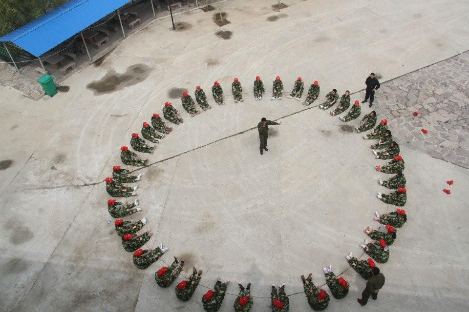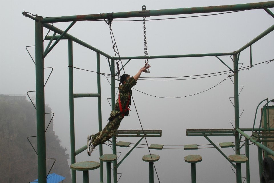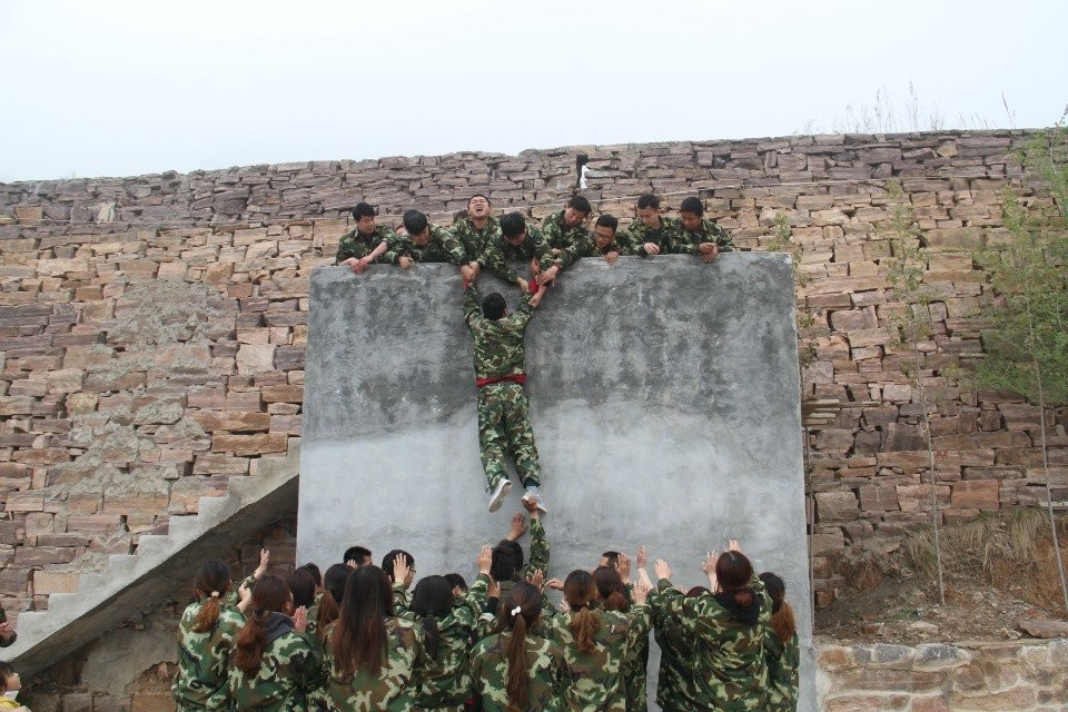 第二天早上,集體跑操,隨后是驚險刺激的“高空起跳抓杠”項目,它讓學(xué)員們學(xué)會了克服心中的恐懼,面對困難時義無反顧的去前進(jìn),在每位學(xué)員上到高空時,其他學(xué)員都高喊“加油加油,努力努力,超越超越”為期鼓勁兒。隨后在三位教練同時帶隊下進(jìn)行了“激情60秒”、“動力圈”和“畢業(yè)墻”集體協(xié)作活動。“動力圈、畢業(yè)墻”則是所有人團(tuán)結(jié)一心,其利斷金,簡單的動作重復(fù)性去做就是不簡單,由此也讓每位學(xué)員聯(lián)想到在工作中的自己。