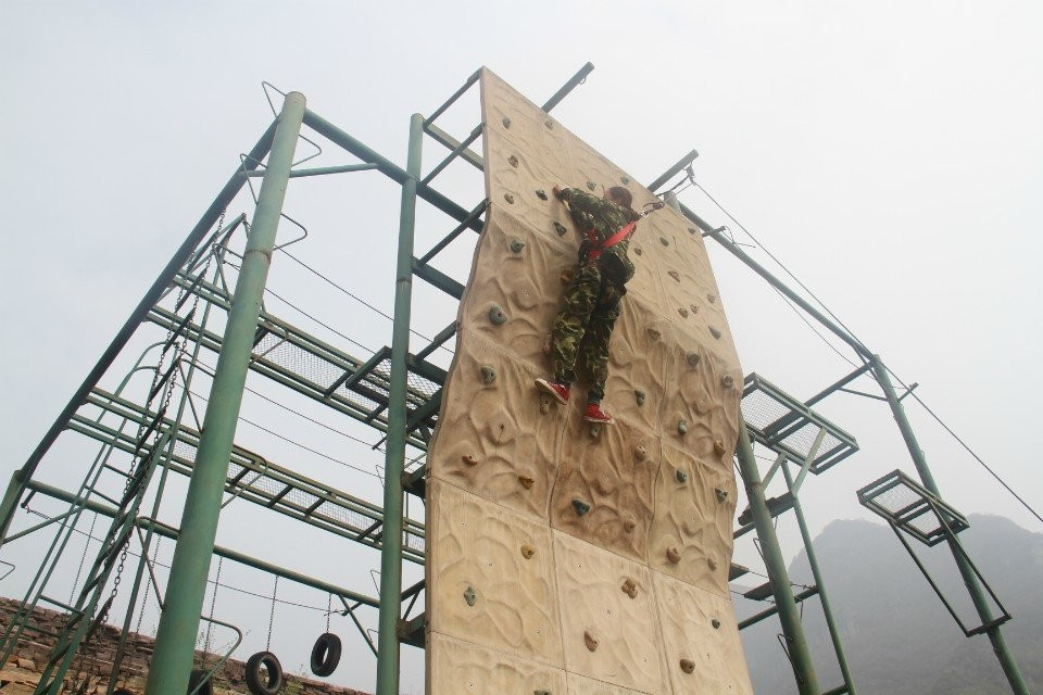 在正式開營前,首先是帶隊領(lǐng)導(dǎo)集團(tuán)副總張振雷做拓訓(xùn)致詞,他講到:“希望讓每位學(xué)員全力以赴到本次拓訓(xùn)活動當(dāng)中,珍惜這次體驗的機(jī)會,并要積極主動的去分享自己感悟”。當(dāng)主教練說“給大家15分鐘時間迅速到自己的房間換上自己的拓訓(xùn)服。”隨之緊張而又激烈的拓展訓(xùn)練拉開帷幕。所有學(xué)員員被分成兩個小組,一隊是如電如風(fēng)的“刀鋒隊”,另外一隊是利刃出鞘的“利劍隊”。拓訓(xùn)第一天,學(xué)員們完成了“攀巖”、“盲人方陣”、“魔鬼電車”三個項目,“攀巖”給大家傳遞的是堅持到底的正能量;“盲人方陣”給學(xué)員們傳遞的是團(tuán)隊之間的溝通與合作.....晚飯后,7點40分每隊學(xué)員出自節(jié)目,帶來了一場別開生面的晚會,學(xué)員們一下子把自己都釋放開了,那種應(yīng)有的激情和活力從新找了回來。