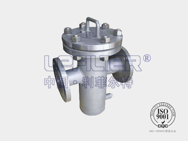 主要由接管、主管、濾藍(lán)、法蘭、法蘭蓋及緊固件等組成。當(dāng)液體通過主管進(jìn)入濾藍(lán)后,固體雜質(zhì)顆粒被阻擋在濾藍(lán)內(nèi),而潔凈的流體通過濾籃、由過濾器出口排出。當(dāng)需要清洗時(shí),旋開主管底部螺塞,排凈流體,拆卸法蘭蓋,清洗后重新裝入即可。因此,使用維護(hù)極為方便。