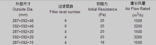 金屬網(wǎng)空氣過濾器性能參數(shù):