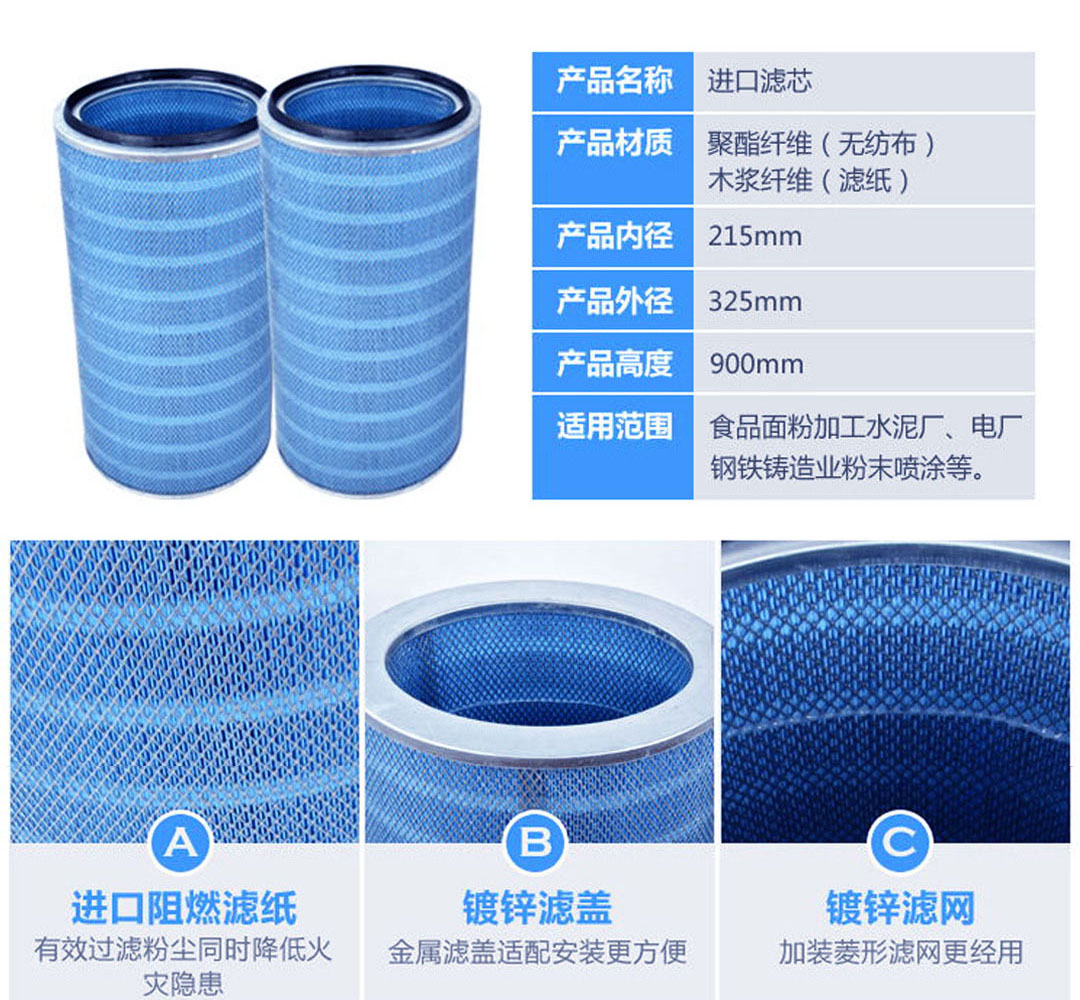 聚酯纖維空氣濾筒屬于表面過濾元件,主要利用濾材表面形成的微小透氣組織阻擋掉氣體中的粒狀物質(zhì)。同時該濾芯采用進口纖維聚酯濾材,纖維耐磨性好,比傳統(tǒng)濾材更能提高過濾風速過濾材挺度好,可做有指導清洗,端蓋骨架均進行防腐處理,不易生銹,可在135度以下使用。我公司生產(chǎn)各種規(guī)格的聚酯纖維濾筒,也可以定做。