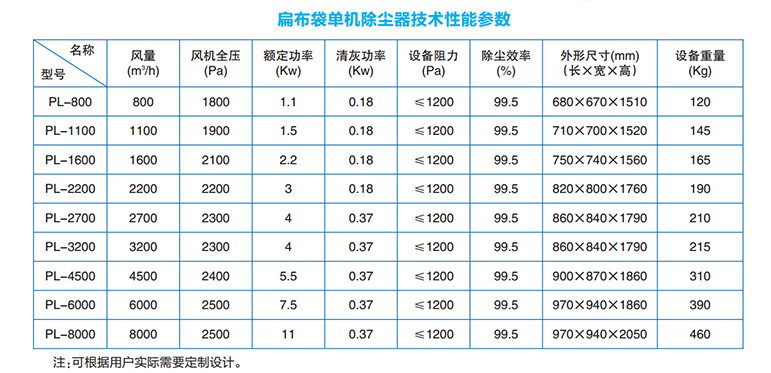 含塵空氣經(jīng)進(jìn)風(fēng)口進(jìn)入箱體,較粗顆粒塵在其自身重力的作用下,沉落至盛灰抽屜中,另一部分較細(xì)粉塵在主風(fēng)機(jī)的抽引下,粉塵被滯留在濾袋外表面,已凈化的氣體穿過濾袋經(jīng)風(fēng)機(jī)出風(fēng)口排出。