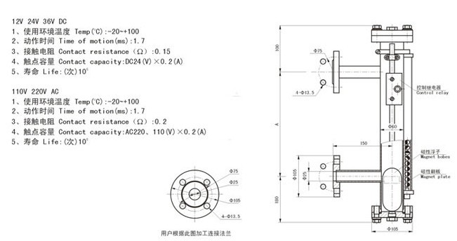 LKSI系列液位控制指示器是集液位計(jì)(目測(cè)),液位控制器(繼電器控制)之優(yōu)點(diǎn)而開(kāi)發(fā)的一種既可目測(cè),又可控制液位的液位控制指示器,適用于敞開(kāi)或封閉式容器中液位狀態(tài)的監(jiān)視與控制。該液位控制指示器是以不銹鋼鋼管為主體,內(nèi)裝磁性浮子、外裝目測(cè)磁性翻板指示器以及可任意調(diào)節(jié)控制點(diǎn)的液位控制繼電器而組成。