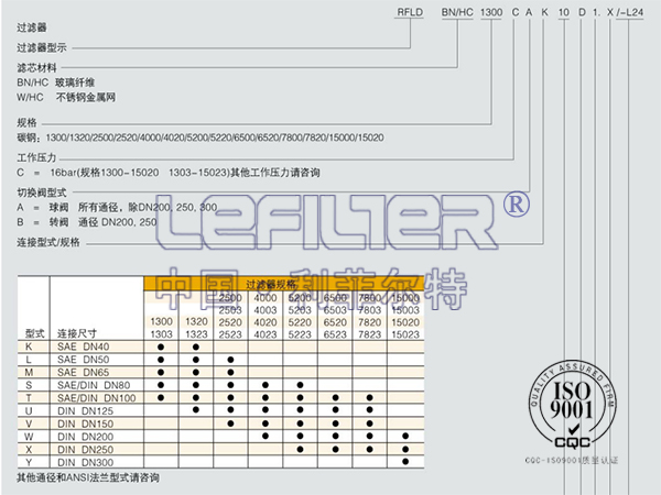 產(chǎn)品簡介:替代替代賀德克RFLD系列大流量雙筒過濾器產(chǎn)品介紹 RFLD系列低壓管路過濾器主要用于液壓系統(tǒng)中介質(zhì)的精過濾,該過濾器可以在系統(tǒng)不關閉的情況下,通過該過濾器中間的3通切換閥完成雙筒的切換,以便于檢修和更換新的濾芯。三通切換閥通徑DN150以內(nèi)為球型切換,大于