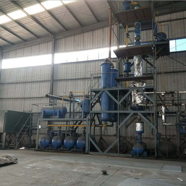廢潤滑油/廢機油蒸餾凈化煉油設(shè)備用途 將各類機械、船舶、機動車或其他設(shè)備更換下來的廢機油(廢潤滑油)經(jīng)過蒸餾凈化后提取出基礎(chǔ)油、汽油、柴油、渣油等產(chǎn)品;原材料價格低廉容易獲取,煉油工藝簡單自動化,所得產(chǎn)品燃料油、基礎(chǔ)油(油品好,價格高)、渣